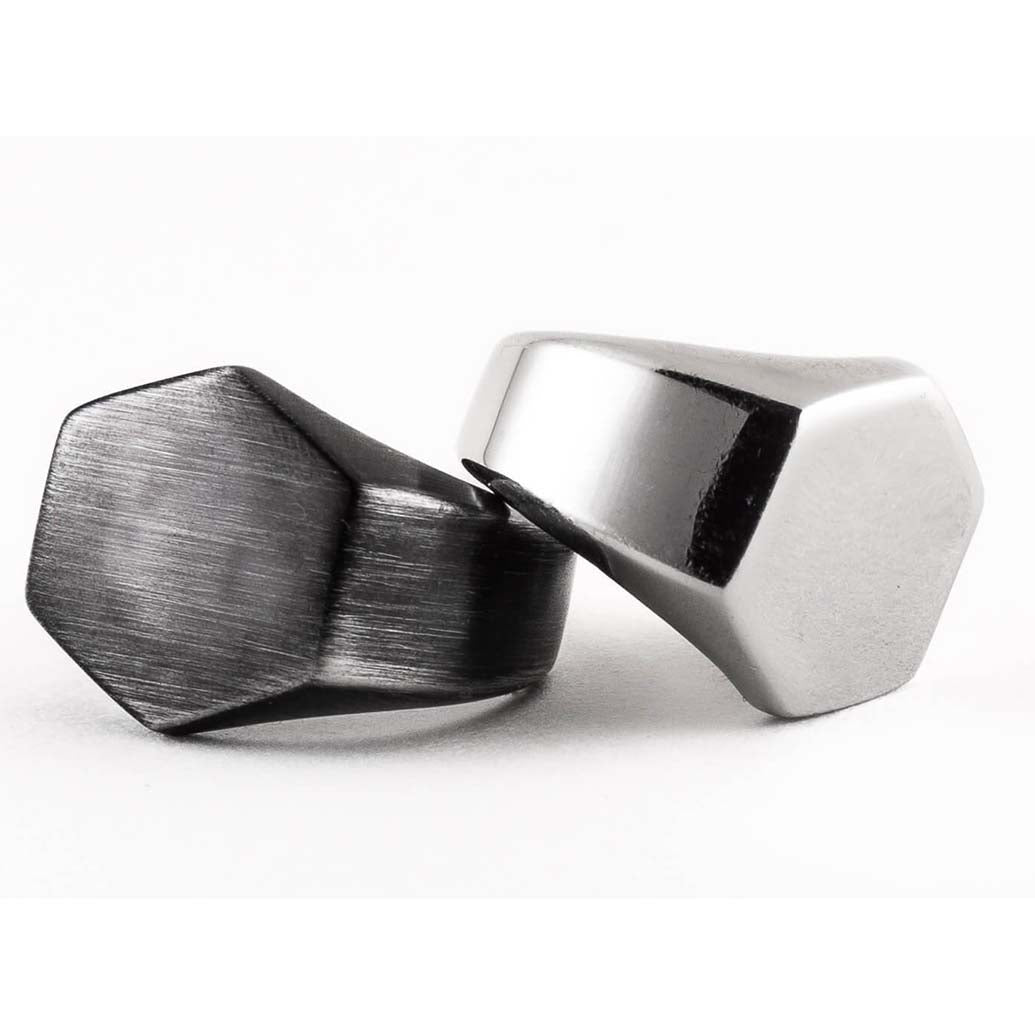 If a statement is what you want then you are in the right place. Inspired by the classic Signet Ring, this bold piece has a modern twist. The distinctive shape and durable metal makes this a ring stand out from the crowd. Brushed black or smooth Steel, the styling options for this piece know no bounds. Set yourself apart, bring adventure to your everyday.